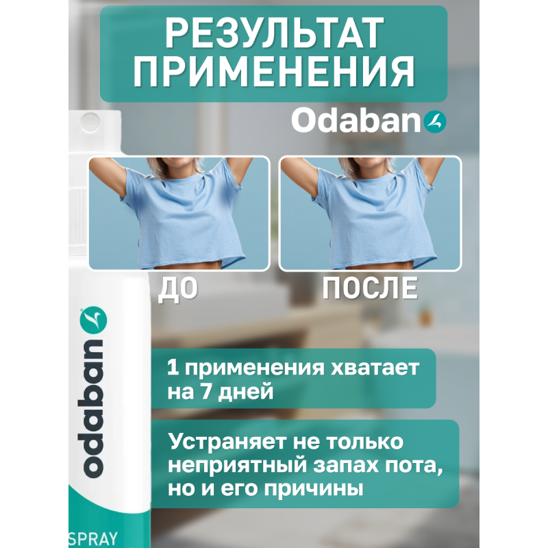 Купить антиперспирант без белых следов Одабан можно в нашем интернет-магазине. Одного флакона с пульверизатором хватает на шесть месяцев. Нанося небольшое количество средства на ночь, вы обеспечите себя защитой от пота и запаха минимум на 3-4 дня.